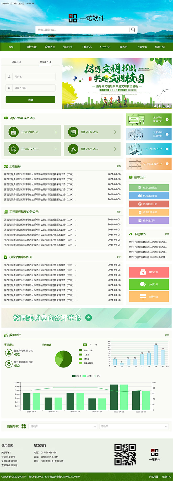 大學采購網站是對外發布采購信息和法規的窗口,供應商及社會公眾可通過此門戶查詢到政府采購的相關公告信息內容;對內供應商、采購單位和專家通過此界面能夠提交注冊申請資料,審核通過后分別加入到系統內的供應商庫、采購單位庫和專家庫。