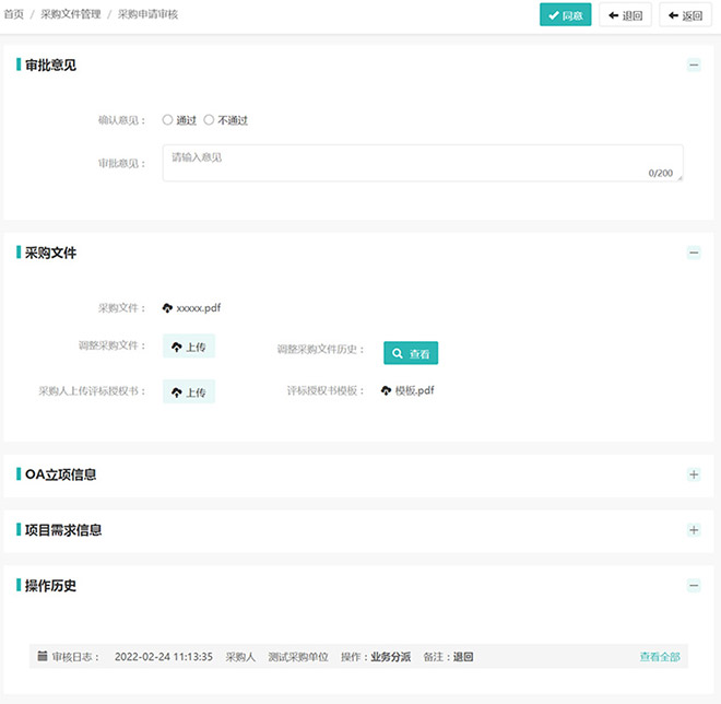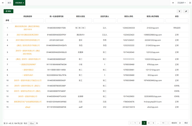 采購單位通過門戶注冊并審核通過的采購單位加入采購單位庫,能進行采購單位基本信息調整,已經使用過的采購單位數據不能刪除只能禁用。