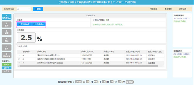 定標負責人或定標協助人登錄系統進行中標供應商指定并發送采購單位確認,采購單位確認后發送預中標公告公示,公示期結束后發布中標公告,并發送中標通知到相應中標供應商。