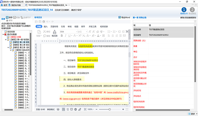 編制工具:主要包括招標文件編制工具、投標文件編制工具。編制工具實現與交易和管理服務無縫對接。交易工具的項目數據來自交易服務的立項數據、采購需求數據和采購實施方案數據可以自動帶入招標文件編制工具編制。