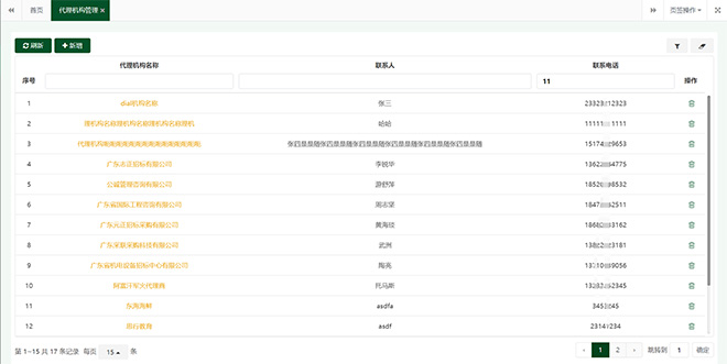 代理機構通過門戶注冊并審核通過的代理機構加入代理機構庫,能進行代理機構信息變更調整,代理機構分類和績效考評,實現與第三方系統對接能查詢企業信用和資質等信息。