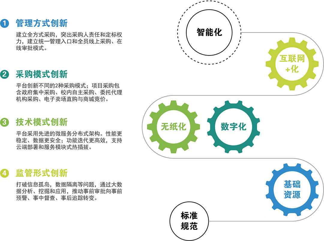 隨著高校、醫院和科研院所采購額度的逐年提高以及自主采購權限的不斷擴大,特別是對于高校、醫院和科研院所在科研儀器設備采購方面擴大自主權后,國內各高校、醫院和科研院所需要進一步加強采購管理。當前學校采購分為分散采購和集中采購兩種形式。未達到學校限額的項目實行分散采購,學校限額以上及政府集中采購目錄范圍內的項目實行統一集中采購。學校需要嚴格遵循事業單位的采購內控管理制度,是風險防控重要領域。因此智慧采購一體化平臺,需要能夠:規范學校采購工作,提高資金使用效益,嚴格國有資產配置管理,維護國家和學校利益,促進廉政建設。